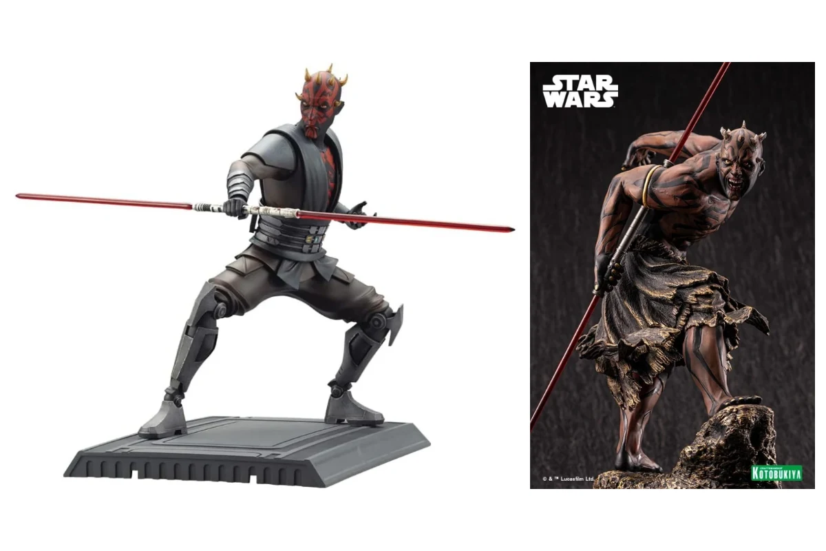 Finally, add the ultimate Maul to your collection with Kotobukiya. The Japanese manufacturer offers two ARTFX statues: one shows Maul in his combat attire from The Clone Wars, and the other is a striking piece from The Phantom Menace 25th anniversary, with a color wash resembling a traditional Japanese painting. The serious collector will love having either one of these on their work desk or proudly displayed on the bookshelf at home!